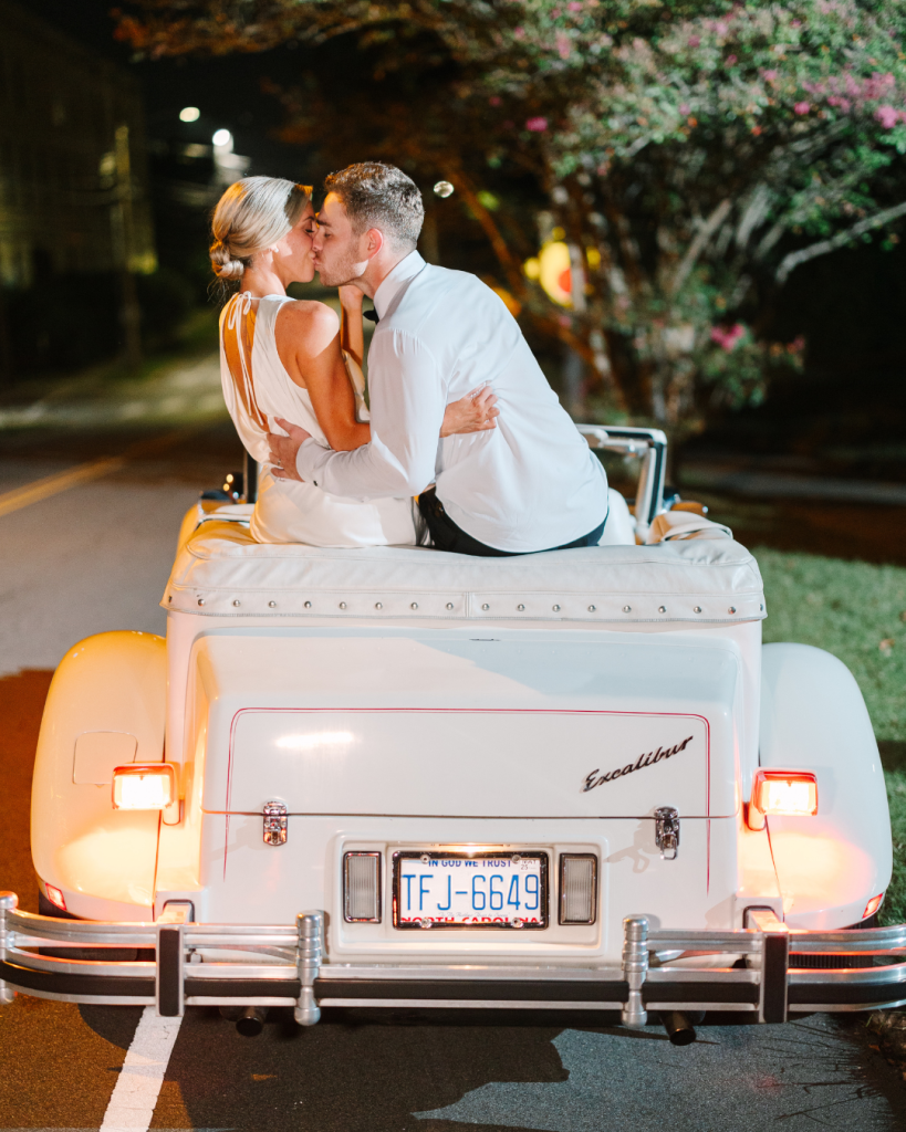 The couple welcomed guests for a celebration that felt both intimate and beautifully grand. Caroline looked breathtaking in a classic gown with an elegant silhouette and a dramatic, flowing train that trailed gracefully behind her down the aisle. Her all-white bouquet, perfectly reflected her graceful, timeless style.