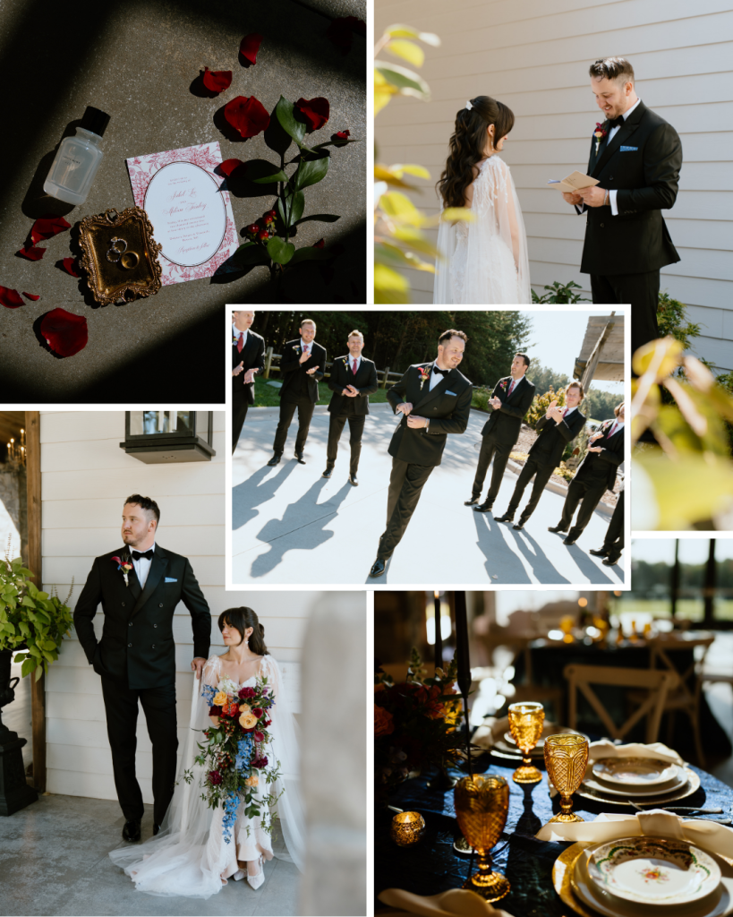 Golden hour portraits captured the two of them in the vineyard light, while moments with their wedding party brought an energy that was equal parts fun and stylish.
