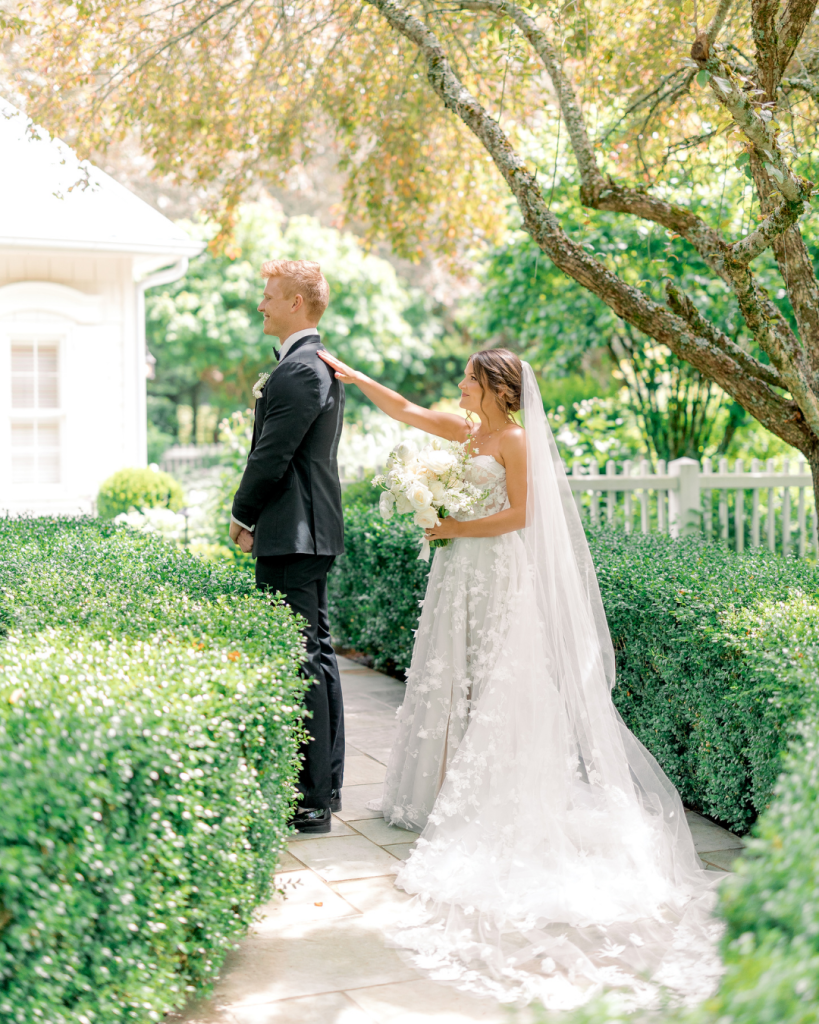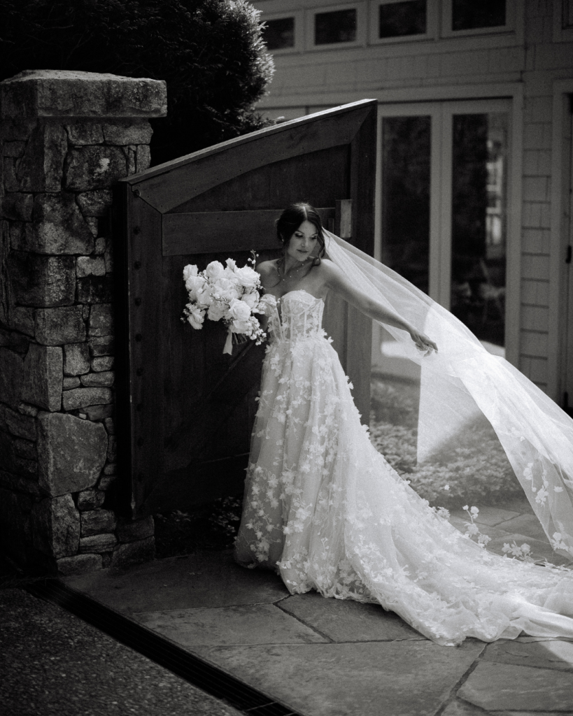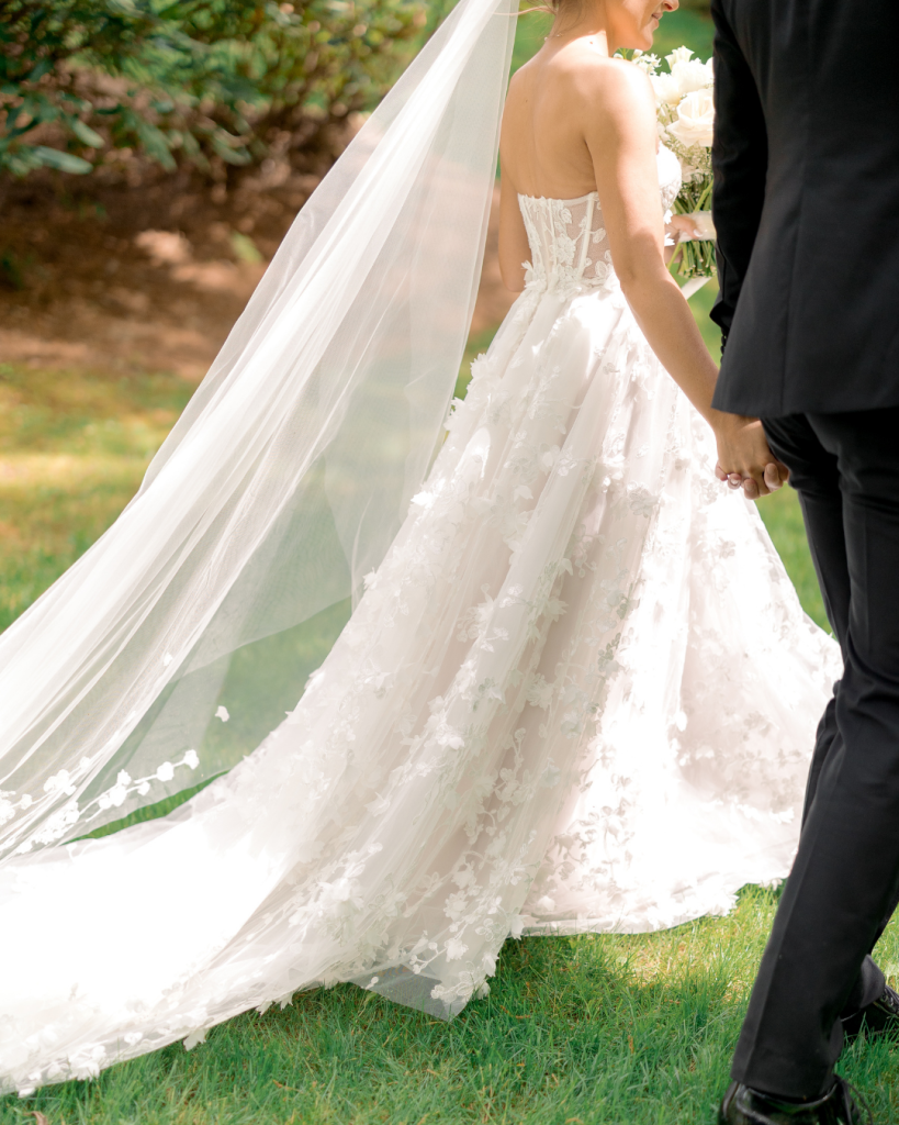 Brooke was radiant in her strapless gown of delicate floral lace — a breathtaking combination of grace and modern romance. Her bouquet of white blooms added a timeless touch, perfectly balancing her look. As she walked down the aisle, Chris couldn’t hold back his emotions watching his best friend and love of his life make her way toward him to say “I do.”
