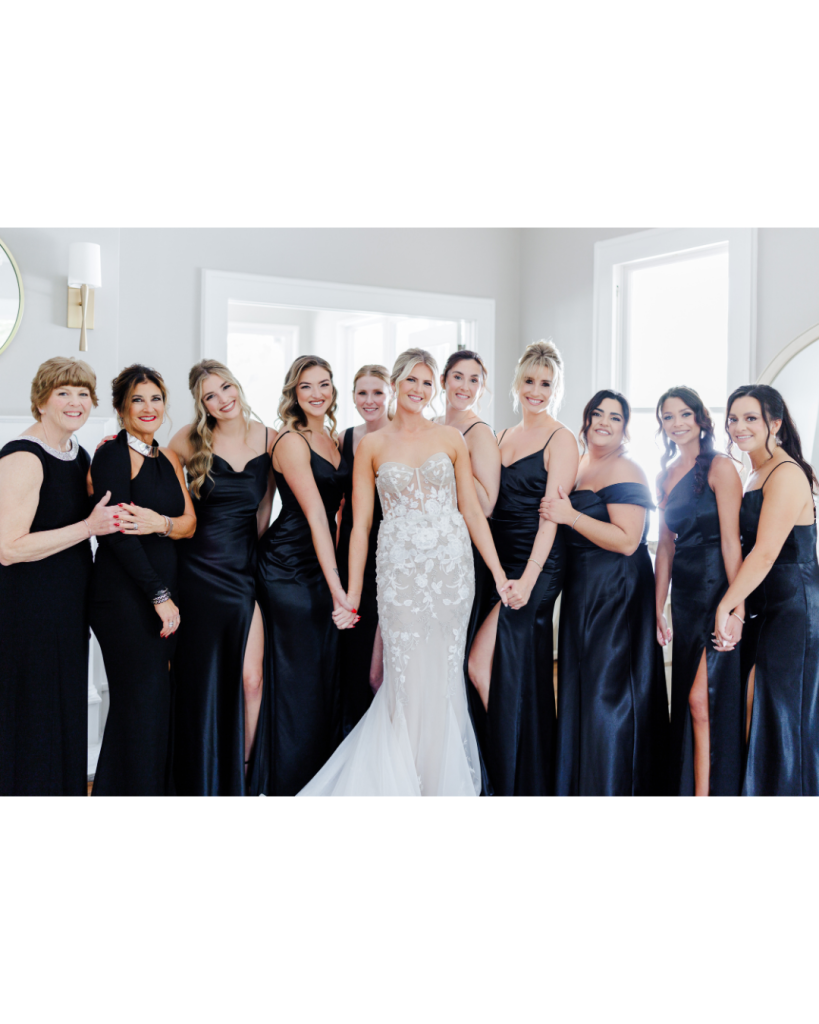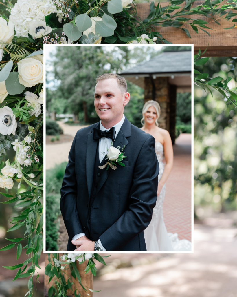 Gabby and Bryan planned a day that felt intentional and welcoming. Their color palette featured crisp white florals accented with bold pops of red, adding richness and romance to the estate’s natural greenery.