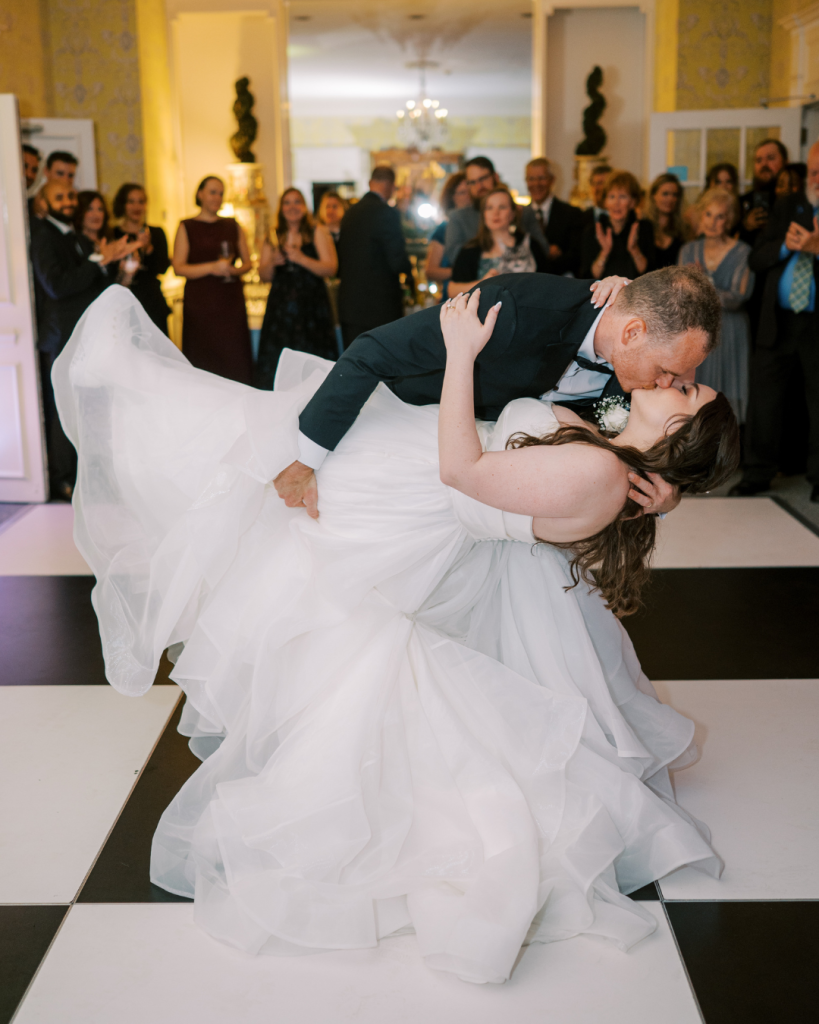 The reception welcomed guests into a warm and inviting space filled with candlelight and thoughtful details. Long tables, layered textures, and lush floral arrangements created an atmosphere that felt both relaxed and elevated. One of the most memorable moments of the evening was their first dance, where they were surrounded by cheering friends and family. It was a true reflection of the happiness that carried throughout the entire day.