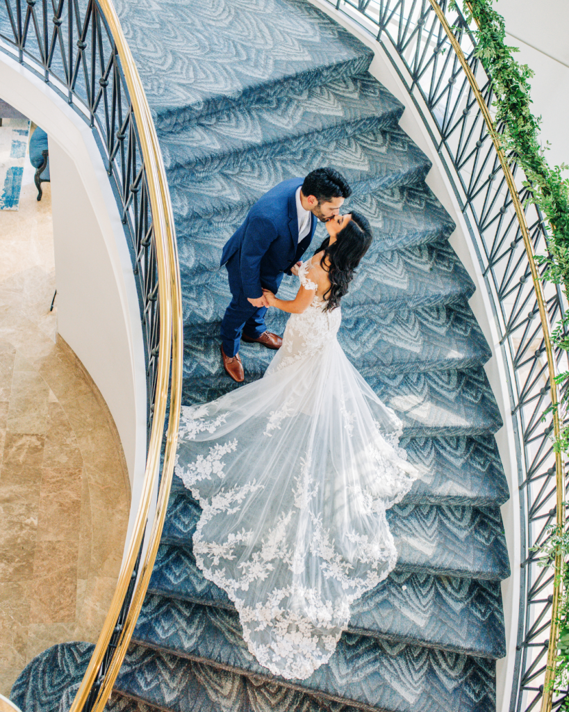 As the day unfolded, Missy and Michael shared intimate portraits throughout the property, from grand staircases to quiet outdoor corners. These moments, captured beautifully by Caitlin Elizabeth Photography, reflect not only the elegance of the venue but also the deep connection between the couple, romantic, timeless, and full of joy.