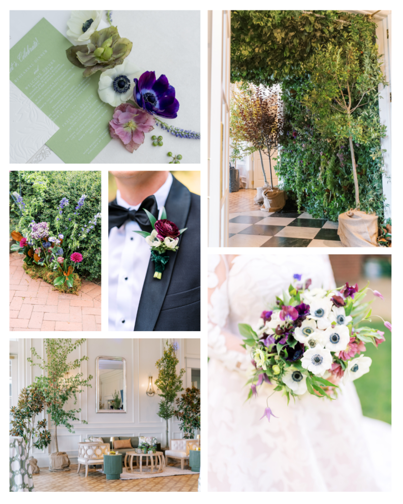 The floral design and installations by Proper Flower were nothing short of breathtaking. Layers of greenery, white blooms, and deep purple florals created striking contrast and a sophisticated autumn palette. Every arrangement felt intentional – soft, dramatic, and beautifully textured.