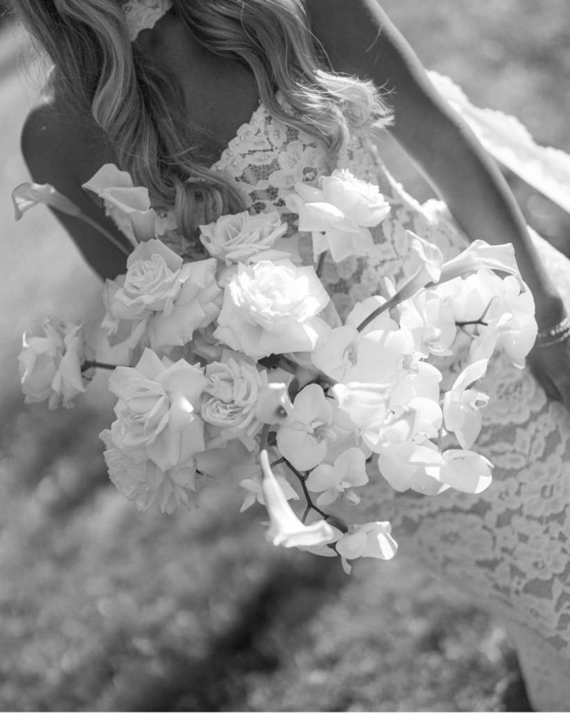 Harmony’s bridal look echoed the day’s aesthetic flawlessly. She stunned in a white lace gown paired with an elegant long neck scarf, adding a fashion forward yet timeless touch. As she floated down the flower lined aisle, every element, from the décor to the venue, worked together to create a moment that felt intimate, romantic, and unforgettable.