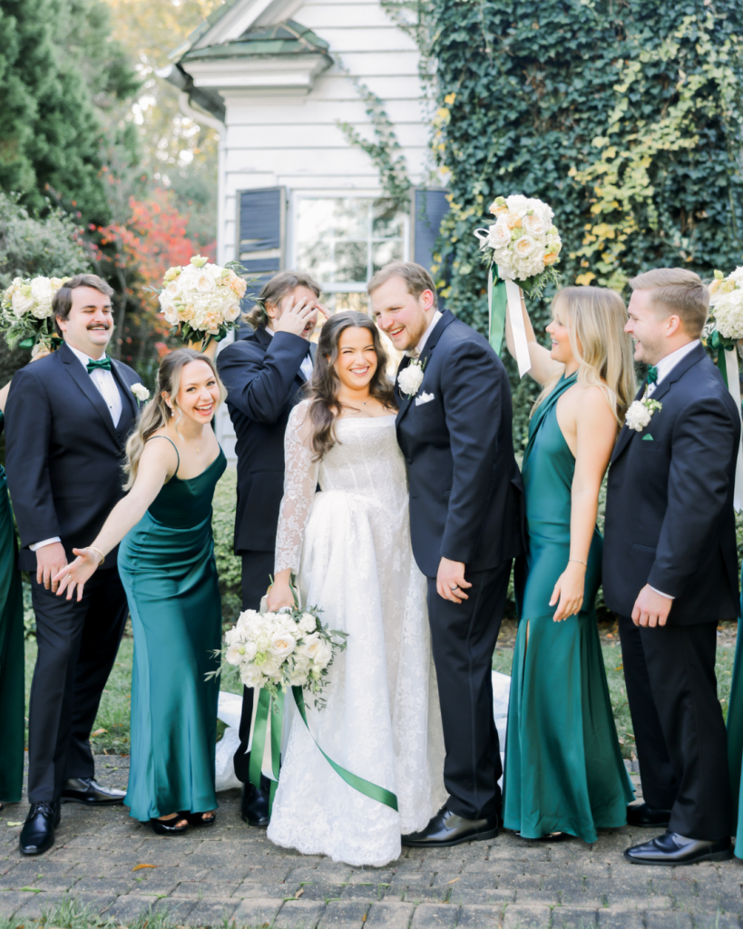 The ceremony took place outdoors in The Morehead Inn’s charming courtyard, surrounded by crisp fall air and glowing sunlight. Live music by Summit Strings carried through the ceremony and cocktail hour, adding an elegant, classic touch that elevated the entire experience.