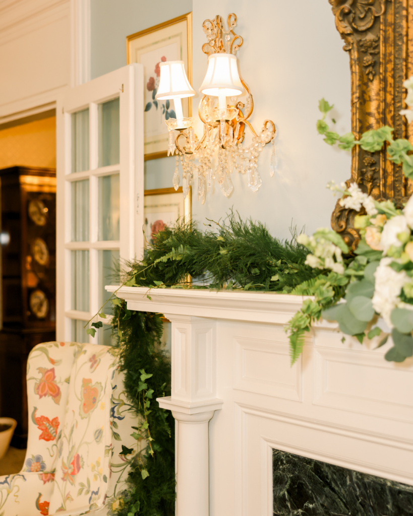 Following the exchange of vows, guests moved indoors for cocktail hour while the courtyard was thoughtfully transformed for dinner. When they returned, they were welcomed into a candlelit setting adorned with lush floral arrangements by Fairytale Florist. Every design detail, expertly curated by Scout & Grace, worked together to create a warm, romantic atmosphere that felt both elevated and inviting.