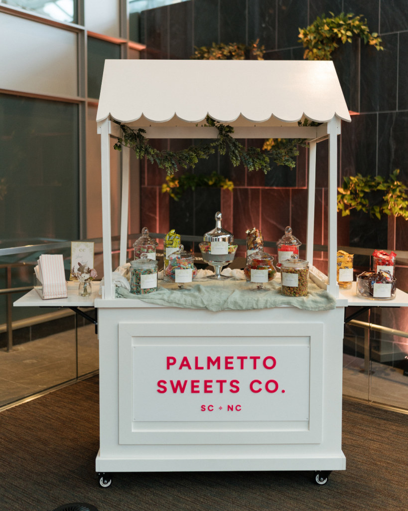 And for a touch of fun (and sweetness), guests couldn’t get enough of the charming candy cart by Palmetto Sweets Co. Beautifully styled and stocked with nostalgic treats, it added a playful, interactive element that guests of all ages loved.