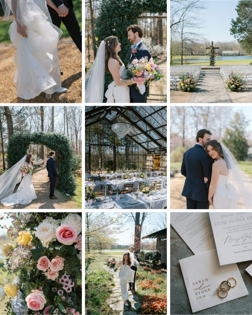 Set against the picturesque backdrop of Morning Glory Farms just minutes from Charlotte, NC, Sarah and Stone’s wedding day was nothing short of magical. With thoughtful details, stunning design, and the presence of their closest loved ones, this celebration was a beautiful reflection of their love story.