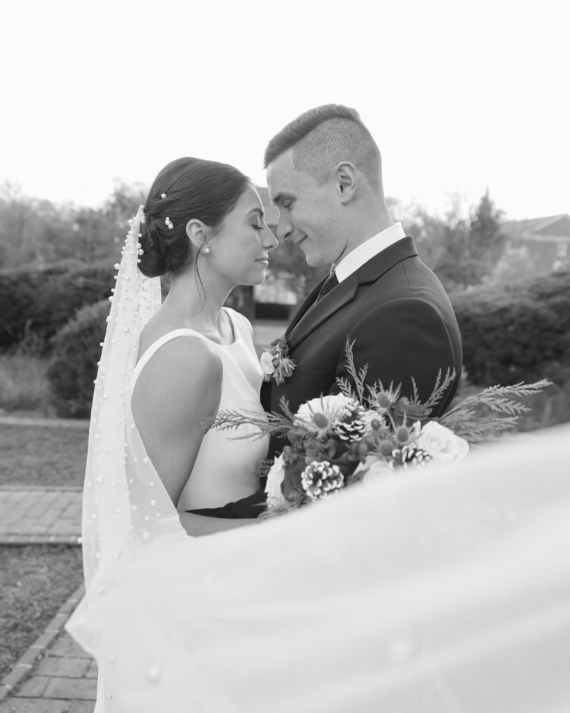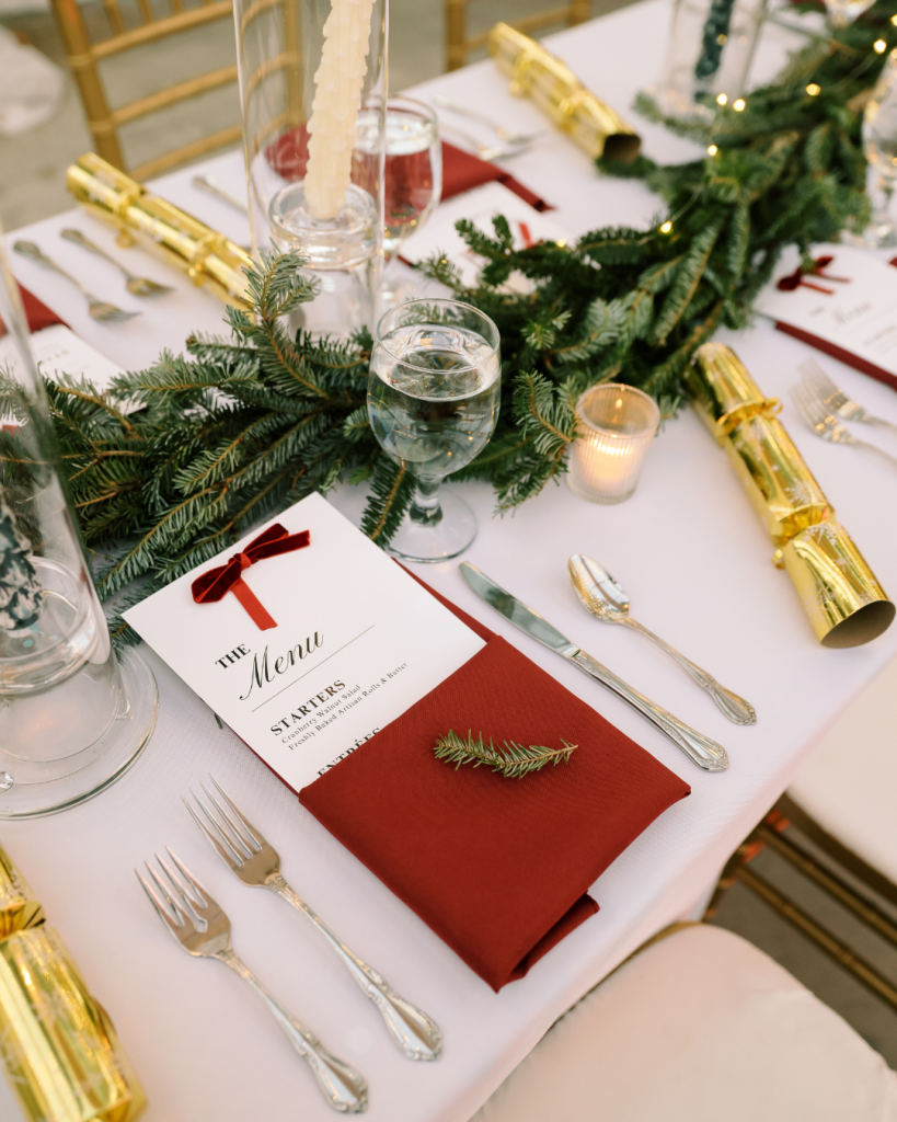 Florals by Radiant Bliss Designs transformed the space into a beautifully layered seasonal escape. Lush arrangements added depth, warmth, and texture throughout the day, elevating the winter aesthetic while maintaining a romantic, timeless feel. The florals and greenery brought the entire design together, creating moments that felt both bold and elegant against the estate’s classic setting.