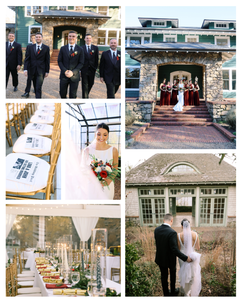Set against the timeless charm of The VanLandingham Estate, Lana and John’s celebration embraced the beauty of the season with a bold, rich color palette and thoughtfully layered details. Every element felt purposeful and refined, creating an atmosphere that was romantic, sophisticated, and perfectly festive for the holiday season. The estate’s historic interiors and serene grounds provided the perfect backdrop for a winter celebration that felt intimate, elegant, and unforgettable.